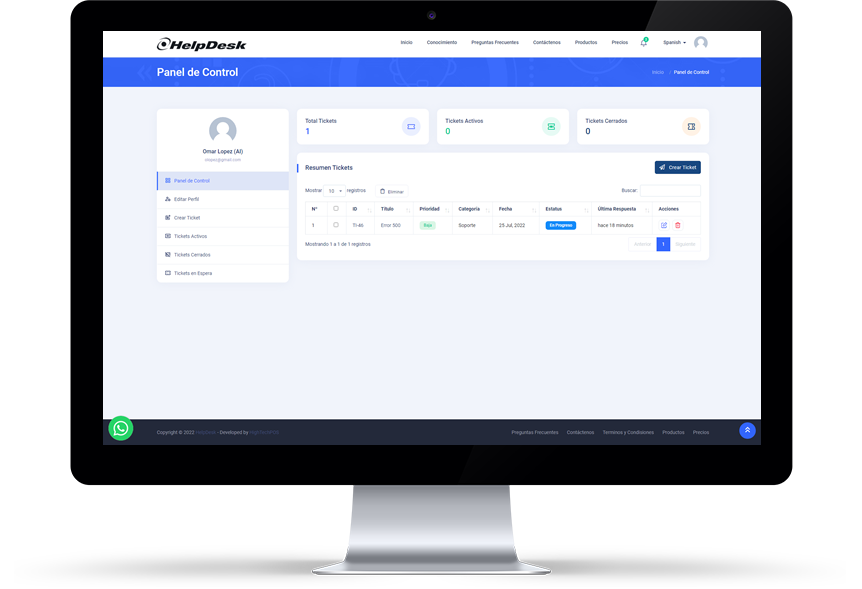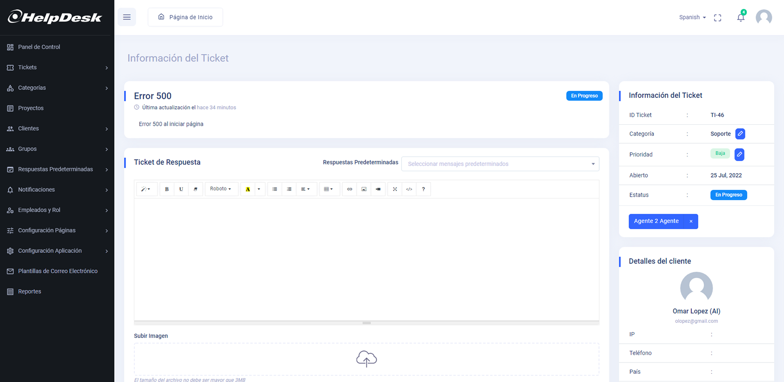 La aplicación HelpDesk detecta automáticamente la dirección IP, el país y la zona horaria de los clientes registrados. También puede bloquear la dirección IP sospechosa escribiéndola manualmente.